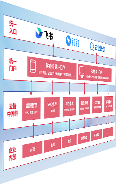 对协作平台提供支持服务,,支持企业应用与协作平台对接,,,,包含组织同步、、、消息集成、、、待办集成等。。。。支持目前主流的协作平台:钉钉、、、、企微和飞书。。。。